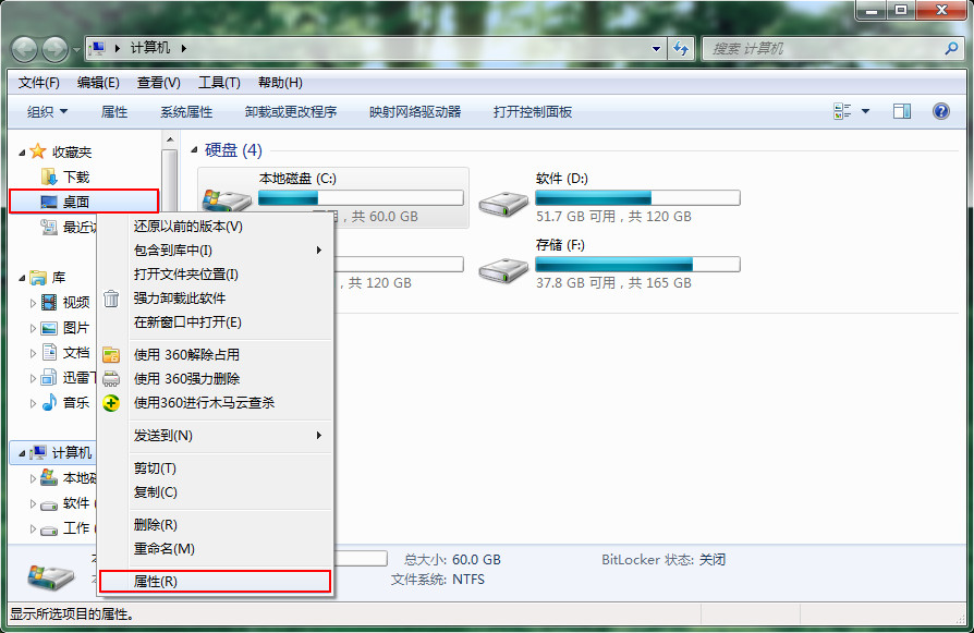 2、鼠標(biāo)右鍵單擊“桌面”選項(xiàng),然后從菜單欄中選取“屬性”項(xiàng),如圖所示: